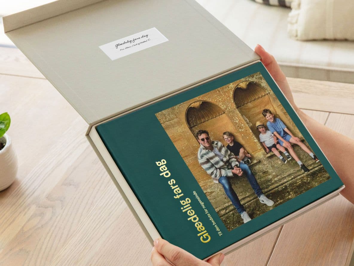 Beskyt hans fotobog til fars dag, og hold de særlige øjeblikke, den indeholder, i perfekt stand år efter år med en præsentationsæske i høj kvalitet.