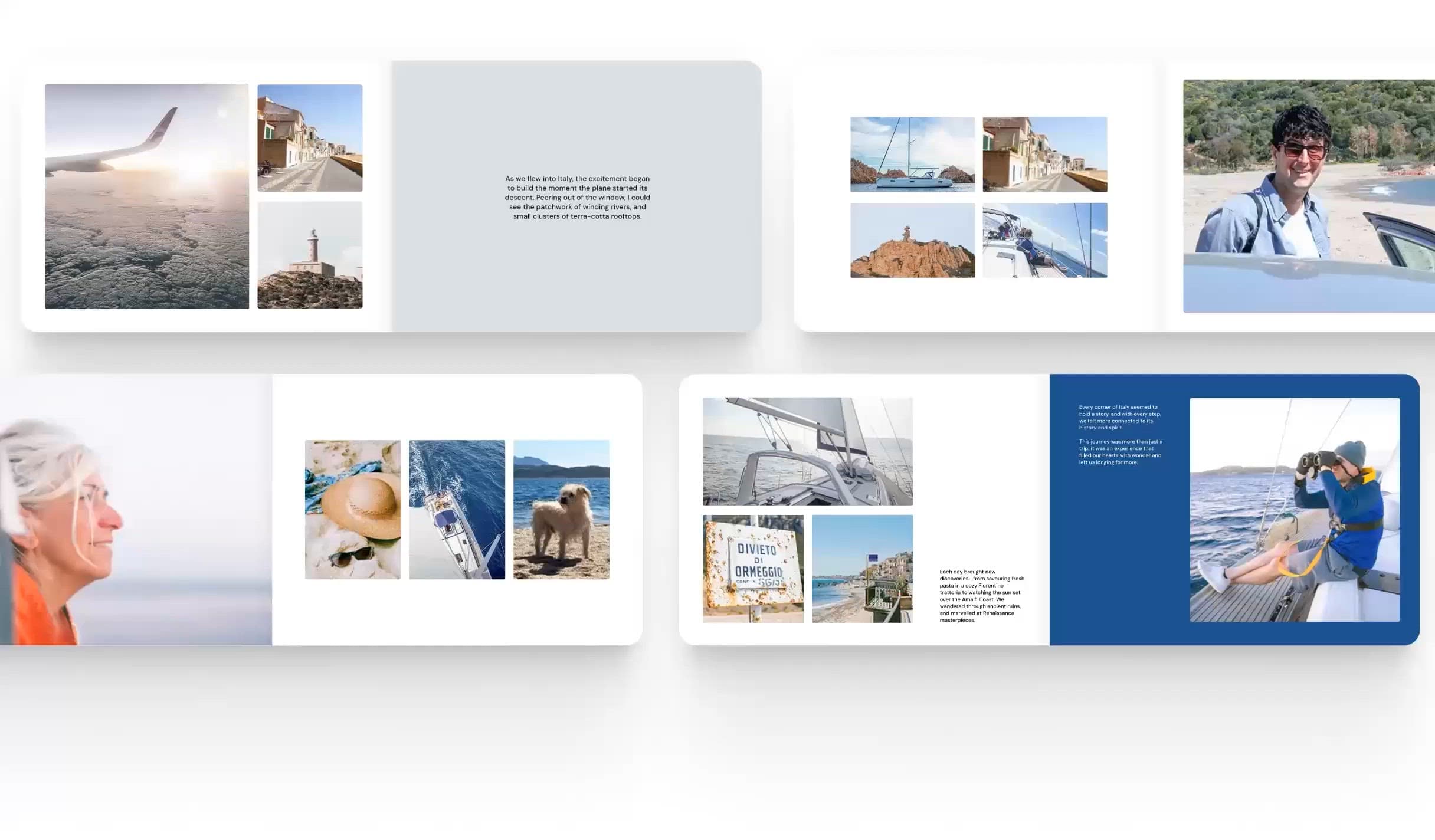 Um eine passende Palette zu erstellen, identifizieren wir die Hauptfarben in jedem Foto. Dadurch werden die Seiten und Bildunterschriften deines Fotobuchs automatisch aufeinander abgestimmt.