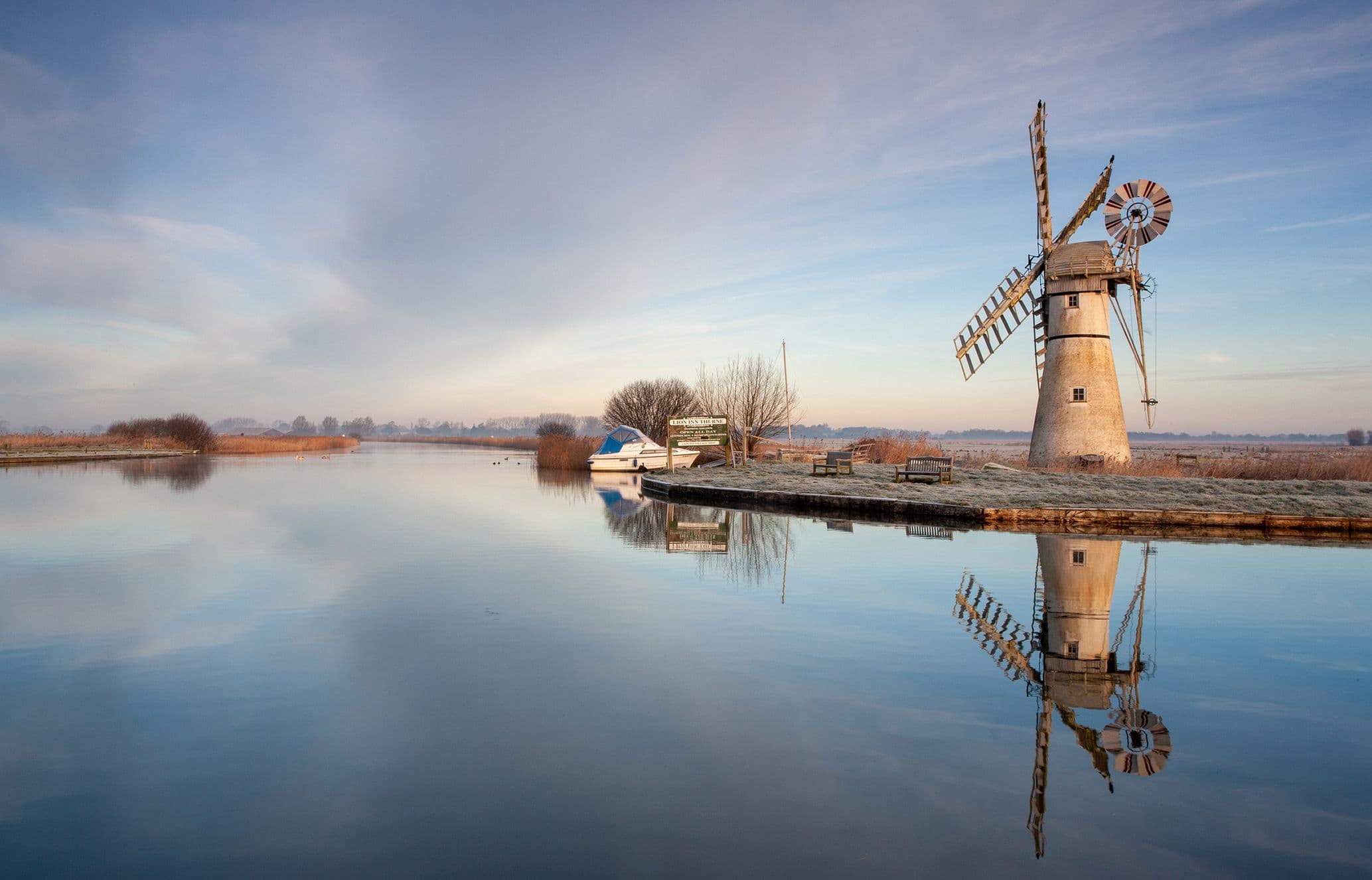 The Broads offers a photographic experience defined by absence – no peaks, just vast skies, mirror-still waterways and an ever-changing quality of light that rewards those who slow down. Best explored by boat, the network of rivers and lakes opens up compositions only accessible from the water, with Hickling Broad and Horsey Mere among the best stretches for dawn photography when mist sits low across the surface. Home to one of England’s highest concentrations of birdlife, marsh harriers quarter the reedbeds year-round and bitterns boom in spring, while otters, now thriving after decades of decline, offer elusive wildlife shots.