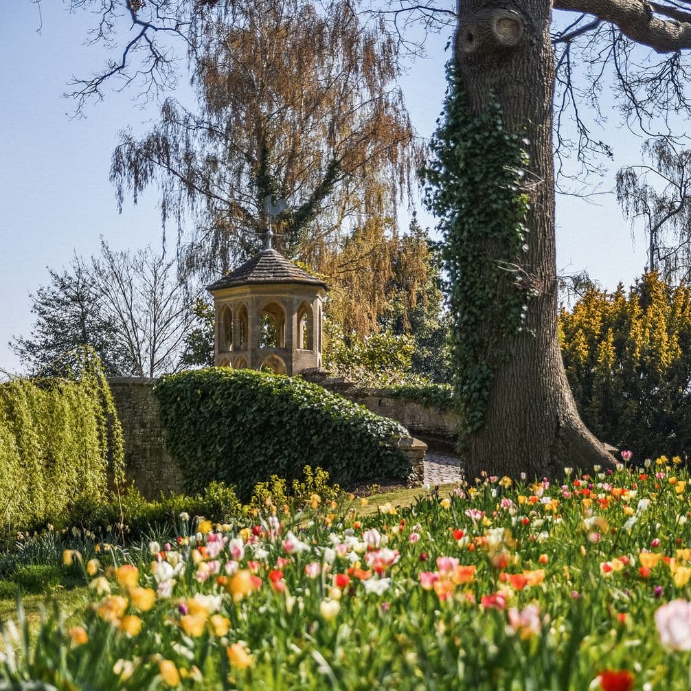 Coton Manor is tucked into the Northamptonshire countryside, where every corner feels considered yet effortlessly natural. In spring, the gardens unfold in layers of colour and scent, beginning with carpets of daffodils and delicate primulas that seem to glow in the soft morning light. Winding paths guide you through early tulip displays, flowering magnolias and sheltered woodland walks where bluebells and snowdrops peek through fresh greenery.