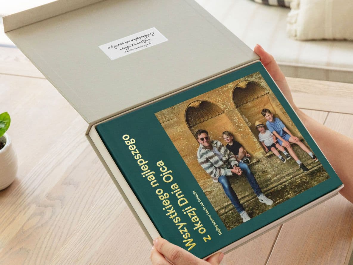 Zabezpiecz fotoksiążkę na Dzień Ojca i zachowaj doskonały stan albumu z wyjątkowymi chwilami na wiele lat dzięki wysokiej jakości pudełku do prezentacji.
